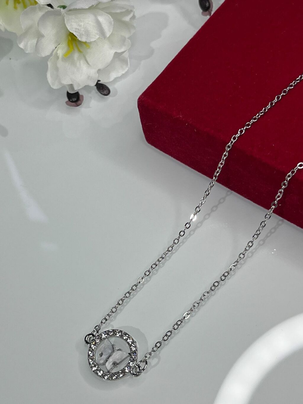 Materiais: Metal base com banho (folheado) de Prata 925 (ou Ródio), pingente com madrepérola (ou material sintético similar de alta qualidade) e zircônias (ou cristais) cravejadas.